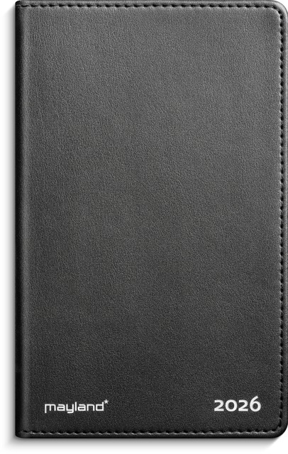 Mål: 12 x 164 x 103 mm. Layout: To dage/opslag. Tværformat. Timeinddeling 8-16. Kalendarium: 1.1.2026 – 31.12.2026. Omslag: Kunstlæder. Indbundet. Indhold: Månedsoversigter. Sideantal: 202. Miljøoplysninger: FSC® papir. Varemærke: Mayland.
